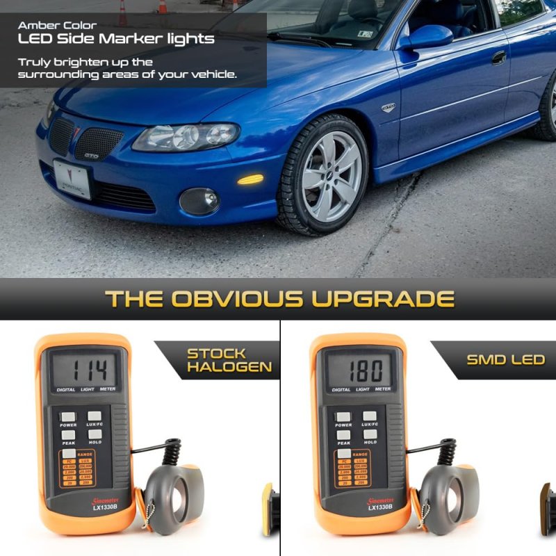 - Full Led Strip Front Side Marker Lights Fender Parking Lamps For 2004-2006 Pontiac Gto Chrome Housing Smoke Tinted Lens Left