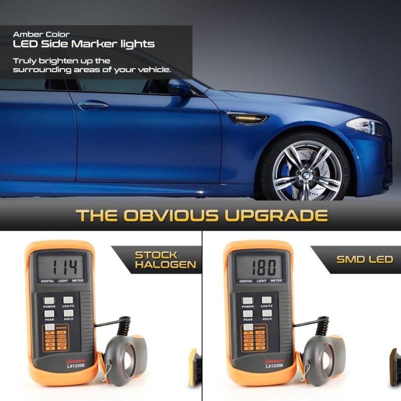 - Full Led Strip Side Marker Lights Fender Parking Lamps For 2012-2016 Bmw F10 M5 5 Series Sedan Chrome Housing Smoke Tinted Lens