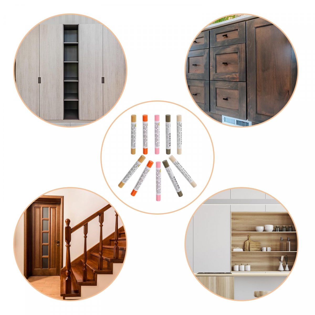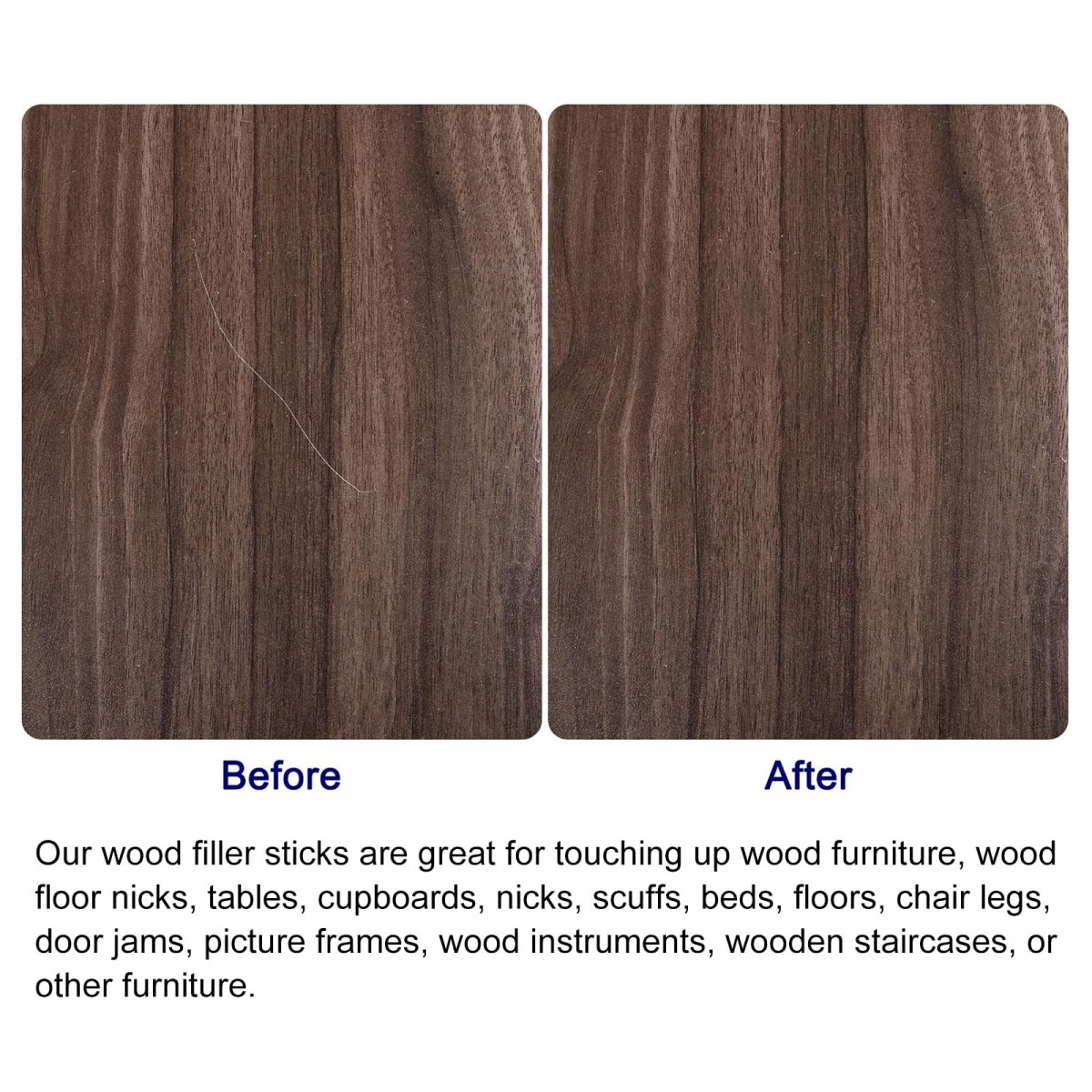 These wood filler sticks are made of good wax material, with natural color, good gloss, strong coverage, and strong waterproof property. It is not easy to fade, economical, and durable.. Furniture touch-up markers are a practical tool, just apply the wood filler sticker to the scratched surface and let dry, you can repair your scratched furniture by yourself with this furniture pen in a short time.. Our wood filler sticks are great for touching up wood furniture, wood floor nicks, tables, cupboard, nicks, scuffs, beds, floors, chair legs, door jams, picture frames, wood instruments, wooden staircase, or other furniture.. These fill sticks quickly and easily eliminate scratches. Clean the area to be filled first and select the color that is closest to the item to be repaired, just rub the wax stick in damaged areas to fill the scratches. You can use a lighter to heat the crayon for better results if it is not easy to paint!.Other fine products