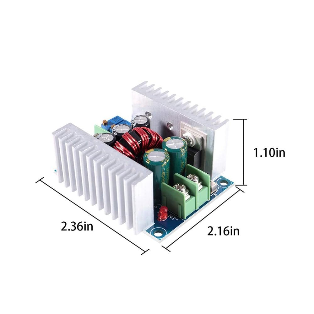 [Adjustable Power Output] : When facing significant differences between input and output voltages, it is recommended to adjust power and current for optimal performance.. [Versatile Applications] : Ideal for diy stabilized voltage supply, led car display, mobile power, industrial equipment, led drivers, monitors, solar energy, fans, motors, and more.. [Stable Output & Efficient Performance] : Utilizes high frequency, low resistance, and stable output capacitor for consistent performance for various applications.. [Wide Voltage Range & High Output] : Input voltage of 6v to 40v (10v to 40v recommended) and output voltage of 1.2v to 36v, supporting high output current of 20a(.) and 15a.. [Enhanced Cooling System] : Features 2 heat sinks to improve heat dissipation, ensuring stable operation during extended use..Other fine products