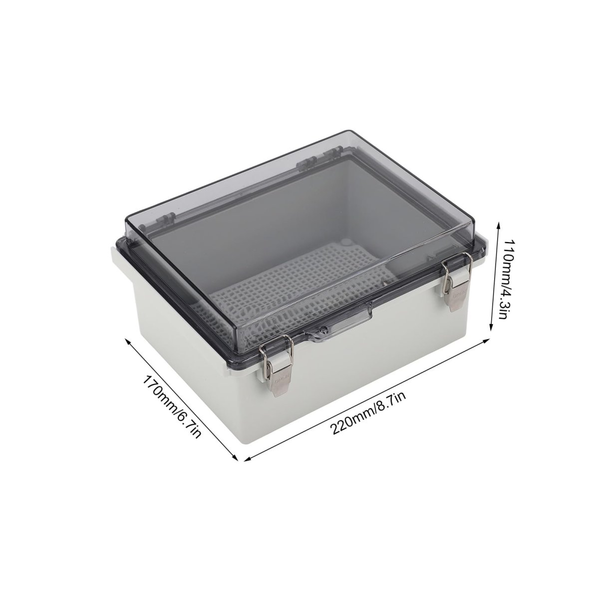 [Stainless Steel] Equipped with a stainless steel , this junction box offers resistance, strong mechanical properties, and durability.. [Weather] Abs plastic construction provides excellent resistance to wind, rain, , and rays, ensuring long-lasting performance.. [Design] The junction box effectively prevents wind, rain, and rays, making it ideal for indoor and outdoor use.. [Easy Installation] The hinged housing and transparent cover enhance accessibility and visibility of items inside the box, easy for opening and closing.. [Durable Material] Made of high-grade abs material, this box is lightweight yet sturdy, with an easily drillable cable outlet for added convenience..Other fine products