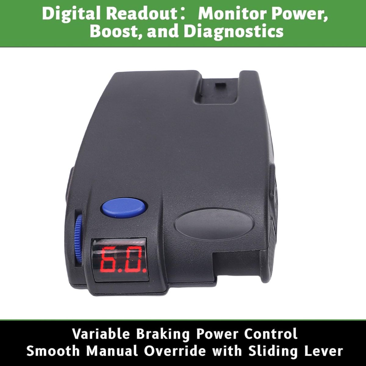 [Seamless Braking Performance] The brake controller ensures that the trailer brakes engage in proportion to the vehicle's braking strength, providing consistent stops for all trailer types.. [Real-time Monitoring] The backlit led screen displays voltage, connection status, and diagnostic information for easy monitoring of trailer brake performance.. [Easy Installation] Plug and play wiring allows for quick and simple installation. flexible mounting options make positioning the controller a breeze.. [Advanced Technology] Featuring automatic leveling and circuit protection, this brake controller ensures reliable performance on various terrains.. [Precise Braking Control] With 3 boost settings, you can fine tune the braking force for heavy loads or emergency stops, giving you enhanced control while driving..Other fine products