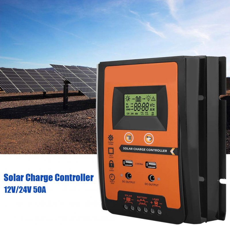 Fydun Mppt Solar Charge Controller 12v 24v Panel Battery Regulator Dual Usb Lcd Display Current 30a 50a 70a Black Orange