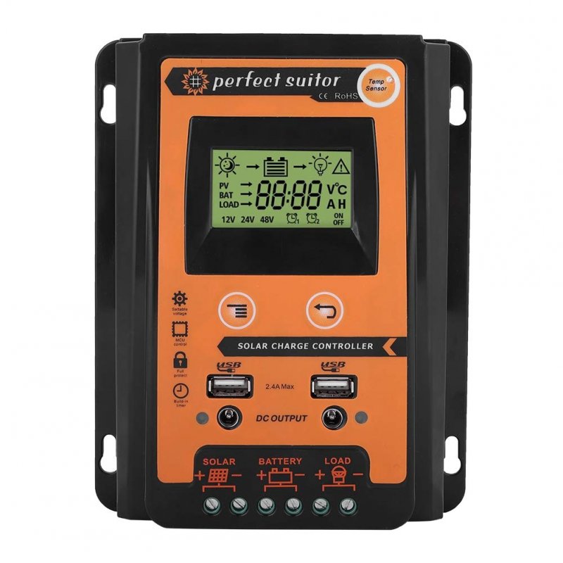 - Fydun Mppt Solar Charge Controller 12v 24v Panel Battery Regulator Dual Usb Lcd Display Current 30a 50a 70a Black Orange