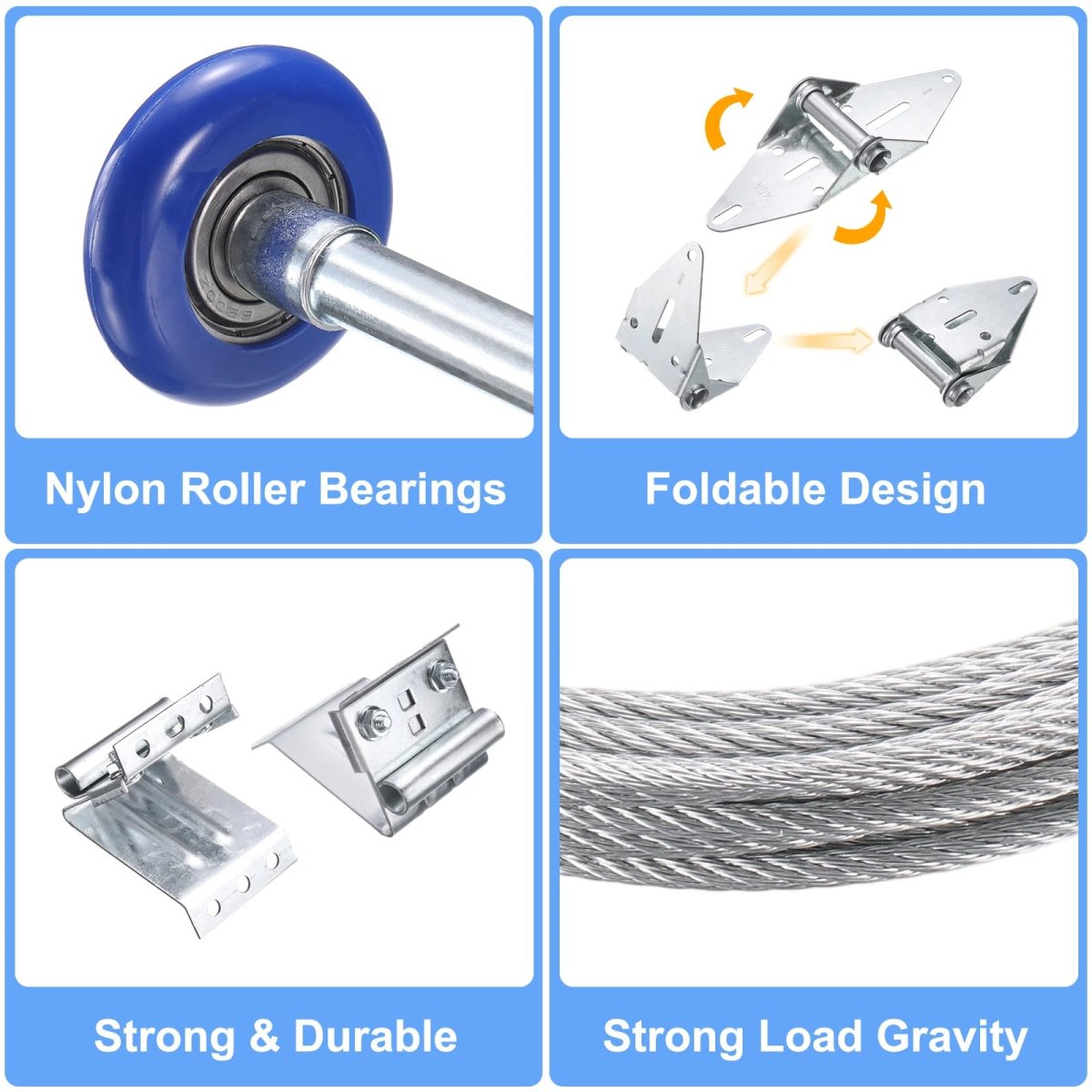 • Garage Door Hinge Roller Tune Up Kit Set 6200zz Blue Without Cover Self-drilling Screws Hinge Top Bracket Wire Rope For 8 X 7ft