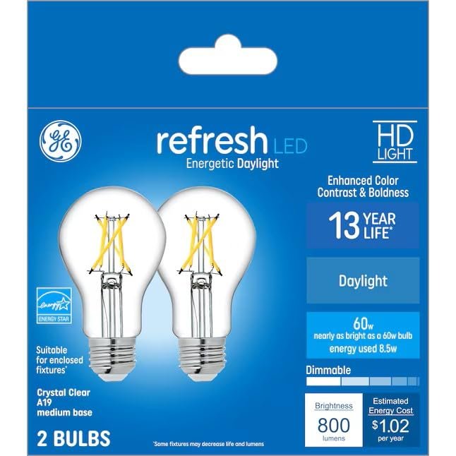 - Ge Refresh 60 Watt Equivalent A19 Daylight Dimmable Led Light Bulb 800 Lumens 2-pack