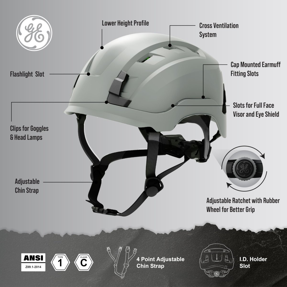 - Ge Safety Helmet Impact Absorbing Tech Adjustable Ratchet Ansi Type 1 Memory Foam Padding Hard Hats Protection Lightweight