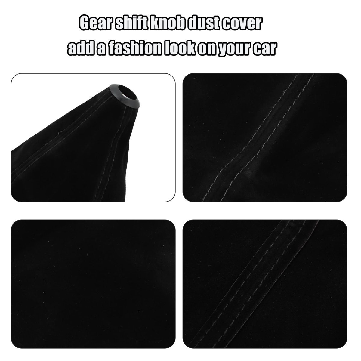 Universal Fit: It can be used for manual transmission and automatic transmission. It can replace the old or damaged car shift knob dust cover.. Good Quality: This car shift cover is made with matte black and black line, which is durable and soft.. Decorative: It can be used to decorate your car and make your car more beautiful. No harm to your car, easy to attach it to car and won't peel off.. Easy to Install: Gear shift knob dust cover with simplify installation steps.Put it in directly, and use its own card slot to get stuck. It can be appropriately cut according to the height of the car's gear lever.. Good Dust Proof: It is made of good suede, which can keep your car clean and tidy. Prevent the surface from scratches, dust, keeping it clear and new for the car gear lever..Other fine products