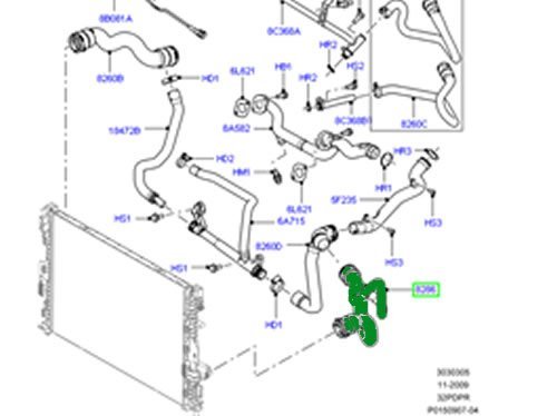 RADIATOR BOTTOM HOSE. LR2 3.2L. old part LR005294. GENUINE NEW PART.