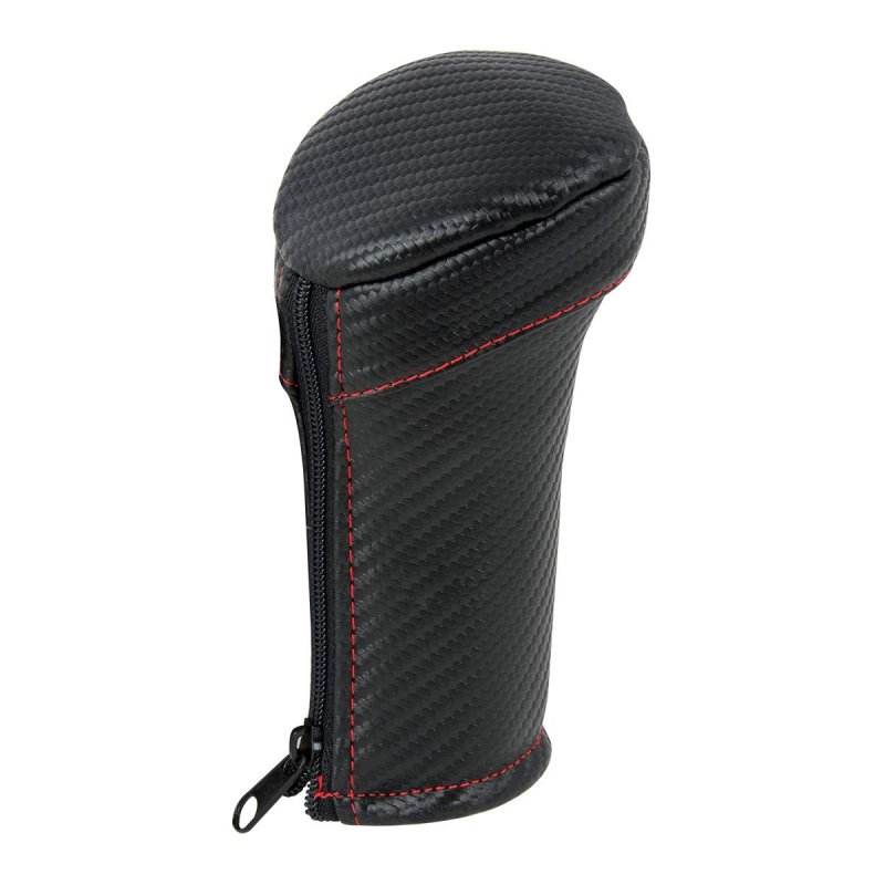 Easy add-on cover for shift knob, Extra padding for comfort. Fits 9/10 & 13/18 Speed (Eaton Fuller). Easy slip-on installation, Made of PVC vinyl leather. Matte carbon fiber with red stitching.