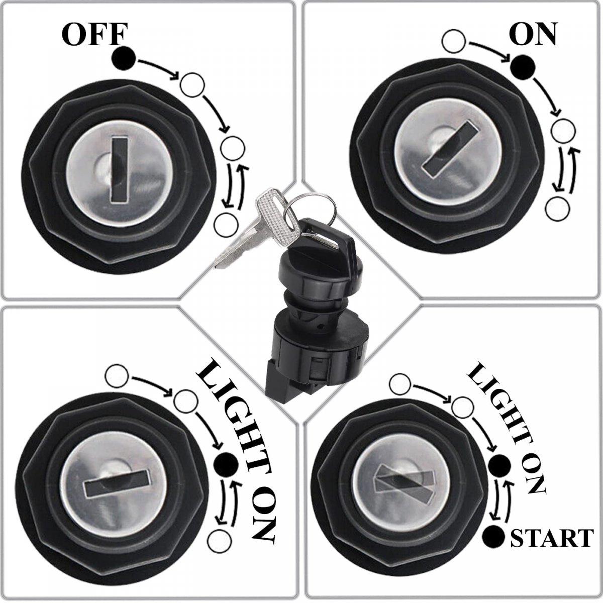 Aftermarket 4 Position Ignition Key Switch for a range of Polaris ATVs UTVs Motorcycles, for OEMs 4016058, 4012166, 4011142. Fits for Polaris RZR Ranger Sportsman ACE Scrambler Trail Blazer Trail Boss 400 500 550 570 800 850 900 1000 and many other models. 4 Shift Position Off/Lights On/Lights Off/Spring Return to Start; 6 Pin Connector; 3amp, 12v.Other fine products