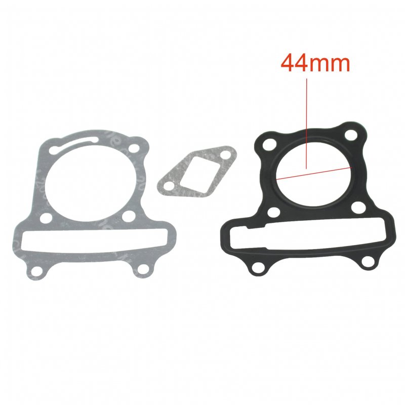 Inner Diameter of Metal Gasket: 50mm. Adjacent Bolt Holes: 50mm (Center-to-Center). Cylinder Head Gasket Material: Steel. Kit Include: 1 Cylinder Head Gasket, 1 Cylinder Block Gasket and 1 Timing Chain Tensioner Gasket. Used for GY6 100cc 50mm Cylinder and Cylinder Head.Other fine products