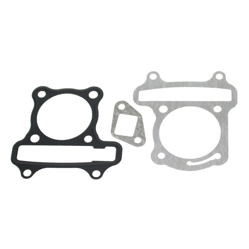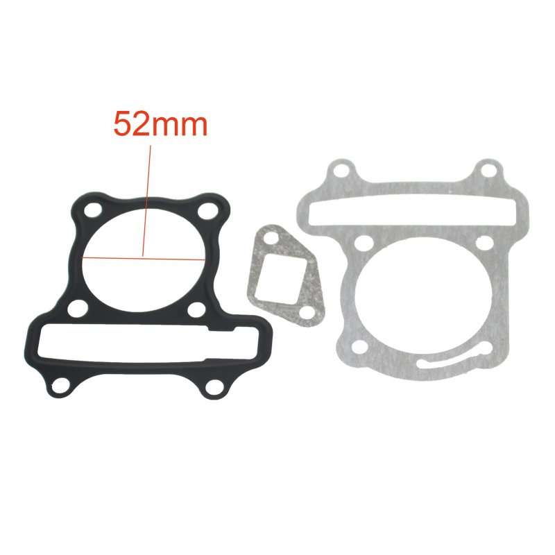 Inner Diameter of Metal Gasket: 52mm. Adjacent Bolt Holes: 50mm (Center-to-Center). Cylinder Head Gasket Material: Steel. Kit Include: 1 Cylinder Head Gasket, 1 Cylinder Block Gasket and 1 Timing Chain Tensioner Gasket. Used for GY6 105cc 52mm Cylinder and Cylinder Head.Other fine products