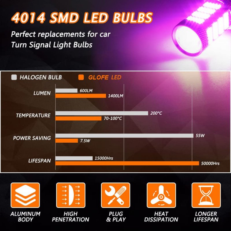 - Glofe High Power 92smd Led Bulbs 14000k Pink Purple 3157 3156 4157 4057 Brake Center Stop Drl Tail Daytime Running Light Bulb