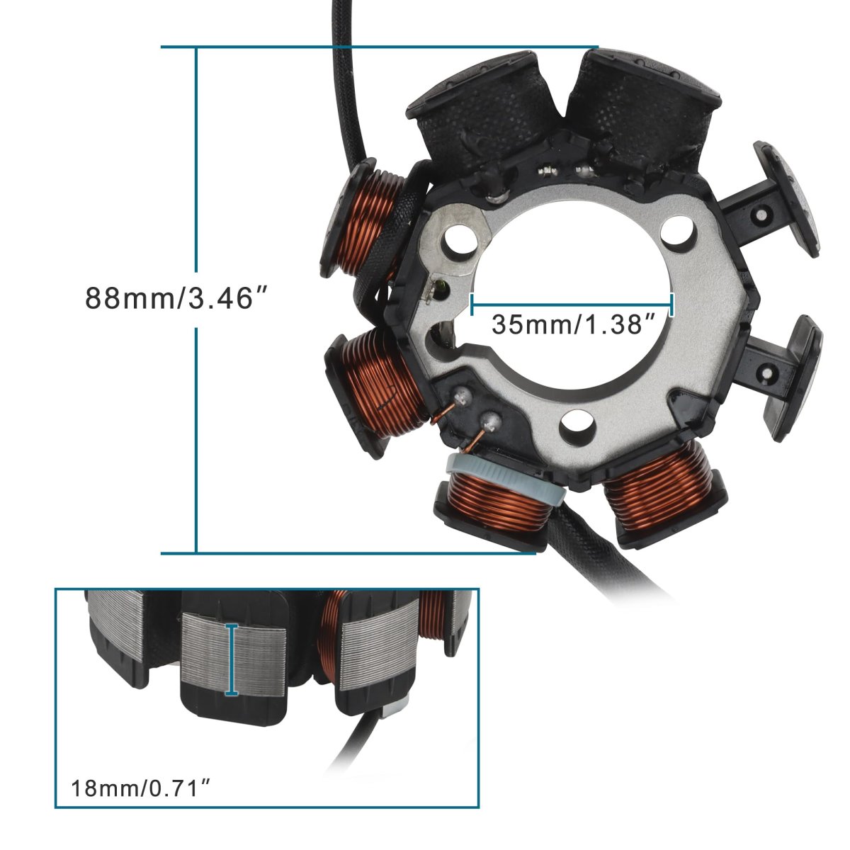 Replacement for xr250 xr250r 1996-2004 31120-kce-671.. Stator coil outer diameter:88mm;inner diameter:35mm;thickness:18mm.. The use of high-quality copper wires and advanced winding technology improves the strength of the magnetic field and ensures stable and powerful current output of the engine at all speeds, thus optimizing the ignition performance and enhancing the acceleration response and hill climbing ability.. Package including:stator coil x 1pc,GOOFIT keychain x 1pc..Other fine products