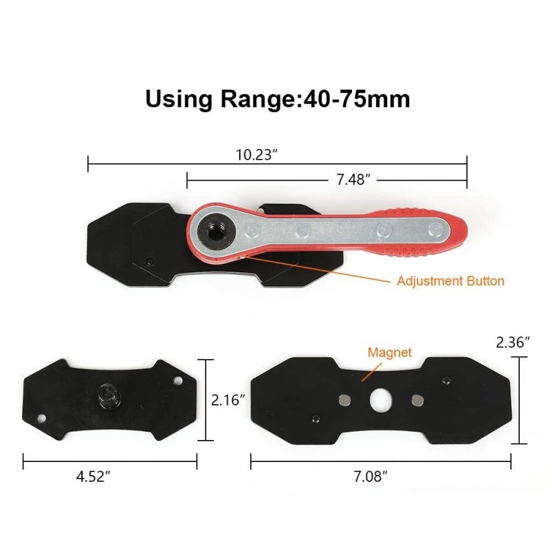 The pads spread from a range of 1-1/2" to 2-5/8" pushing the caliper pistons back to allow plenty of room to install the new brake pads.. The ratcheting design makes it easy to get even the most difficult of brake jobs done faster.. These added plates allow for a larger length range to more effectively work on larger calipers.. The add on Plates snap directly on to unit and are held in place by magnets.. Compared with the traditional brake piston returning tool, our product is more convenient and fast. Easy to install. Easy to remove..Other fine products