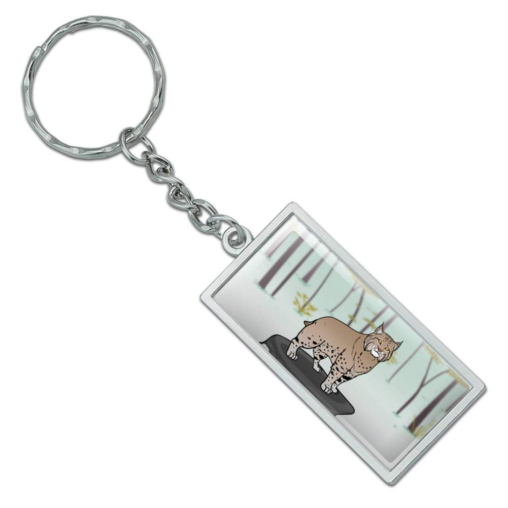 • Graphics More Bobcat Lynx Cat Rectangle Keychain In Chrome Plated Metal