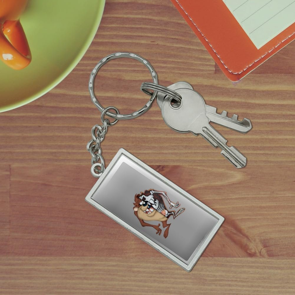 • Graphics More Looney Tunes Taz Half Skeleton Rectangle Keychain In Chrome Plated Metal