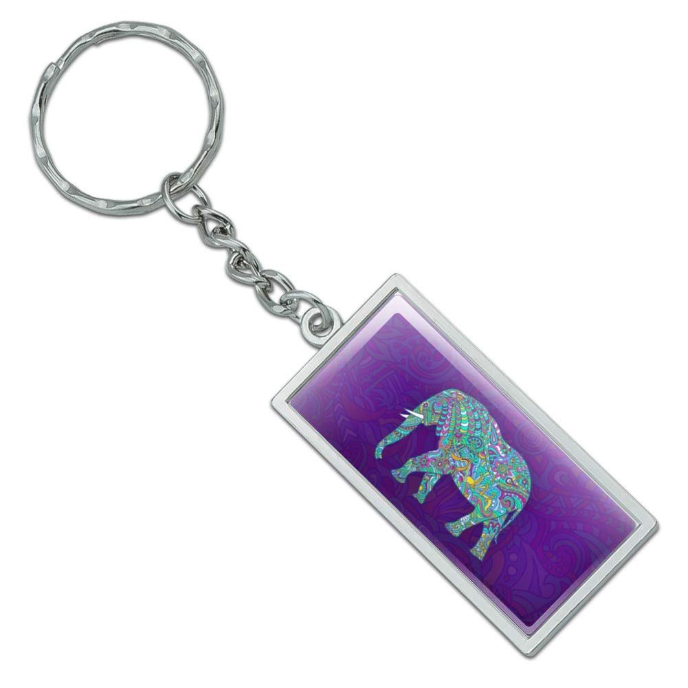 - Graphics More Mosaic Elephant Rectangle Keychain In Chrome Plated Metal