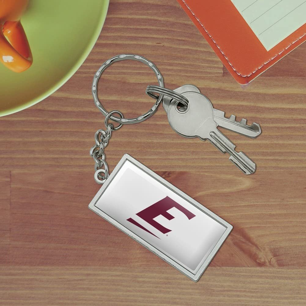 RECTANGLE KEYCHAIN - This Eastern Kentucky Secondary Logo keychain will bring some flavor to your boring bundle of keys!. DURABLE RESIN-TOPPED DESIGN - The Eastern Kentucky Secondary Logo design shown is resin-topped for durability.. QUALITY MATERIAL - This Eastern Kentucky Secondary Logo keychain is made of metal with a chrome plated finish.. SIZE DETAILS - Made of chrome plated metal, and the rectangle is approximately 2.0" (5.1cm) x 1.0" (2.5cm) in size..Other fine products