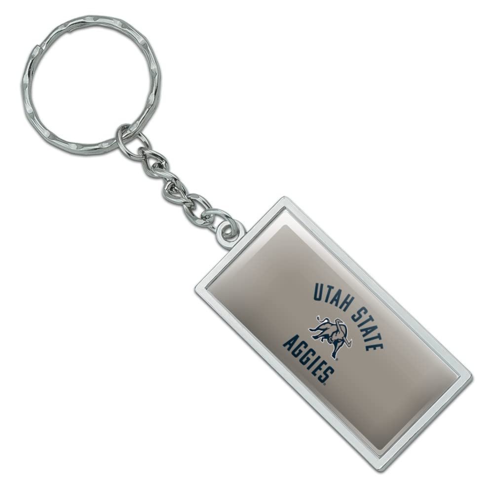 RECTANGLE KEYCHAIN - This Utah State University Aggies Logo keychain will bring some flavor to your boring bundle of keys!. DURABLE RESIN-TOPPED DESIGN - The Utah State University Aggies Logo design shown is resin-topped for durability.. QUALITY MATERIAL - This Utah State University Aggies Logo keychain is made of metal with a chrome plated finish.. SIZE DETAILS - Made of chrome plated metal, and the rectangle is approximately 2.0" (5.1cm) x 1.0" (2.5cm) in size..Other fine products