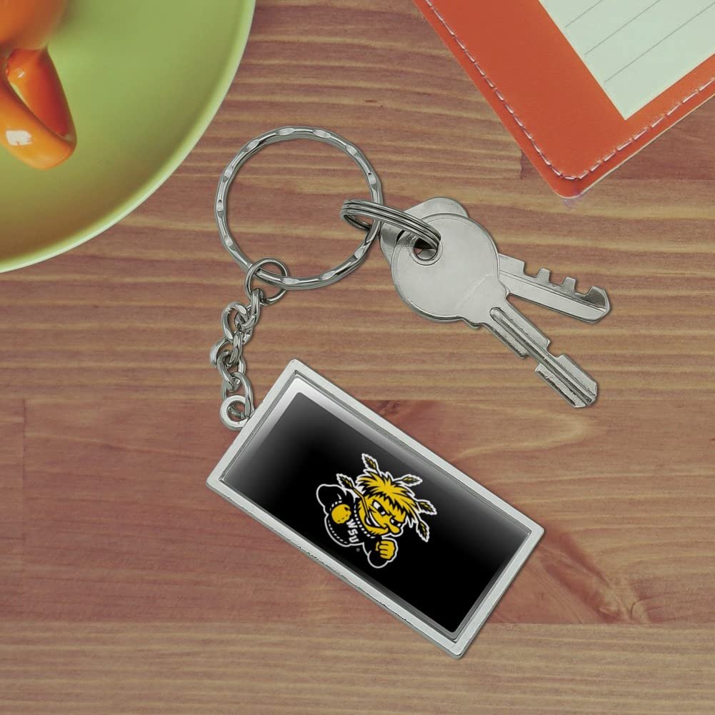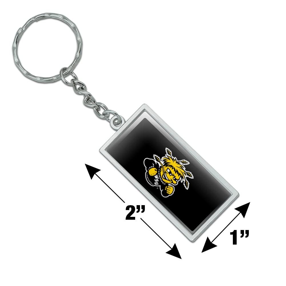 RECTANGLE KEYCHAIN - This Wichita State University Shockers Logo keychain will bring some flavor to your boring bundle of keys!. DURABLE RESIN-TOPPED DESIGN - The Wichita State University Shockers Logo design shown is resin-topped for durability.. QUALITY MATERIAL - This Wichita State University Shockers Logo keychain is made of metal with a chrome plated finish.. SIZE DETAILS - Made of chrome plated metal, and the rectangle is approximately 2.0" (5.1cm) x 1.0" (2.5cm) in size..Other fine products