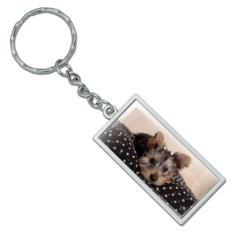 - Graphics More Yorkie Yorshire Terrier Puppy Dog On A Spotted Cushion Rectangle Keychain In Chrome Plated Metal