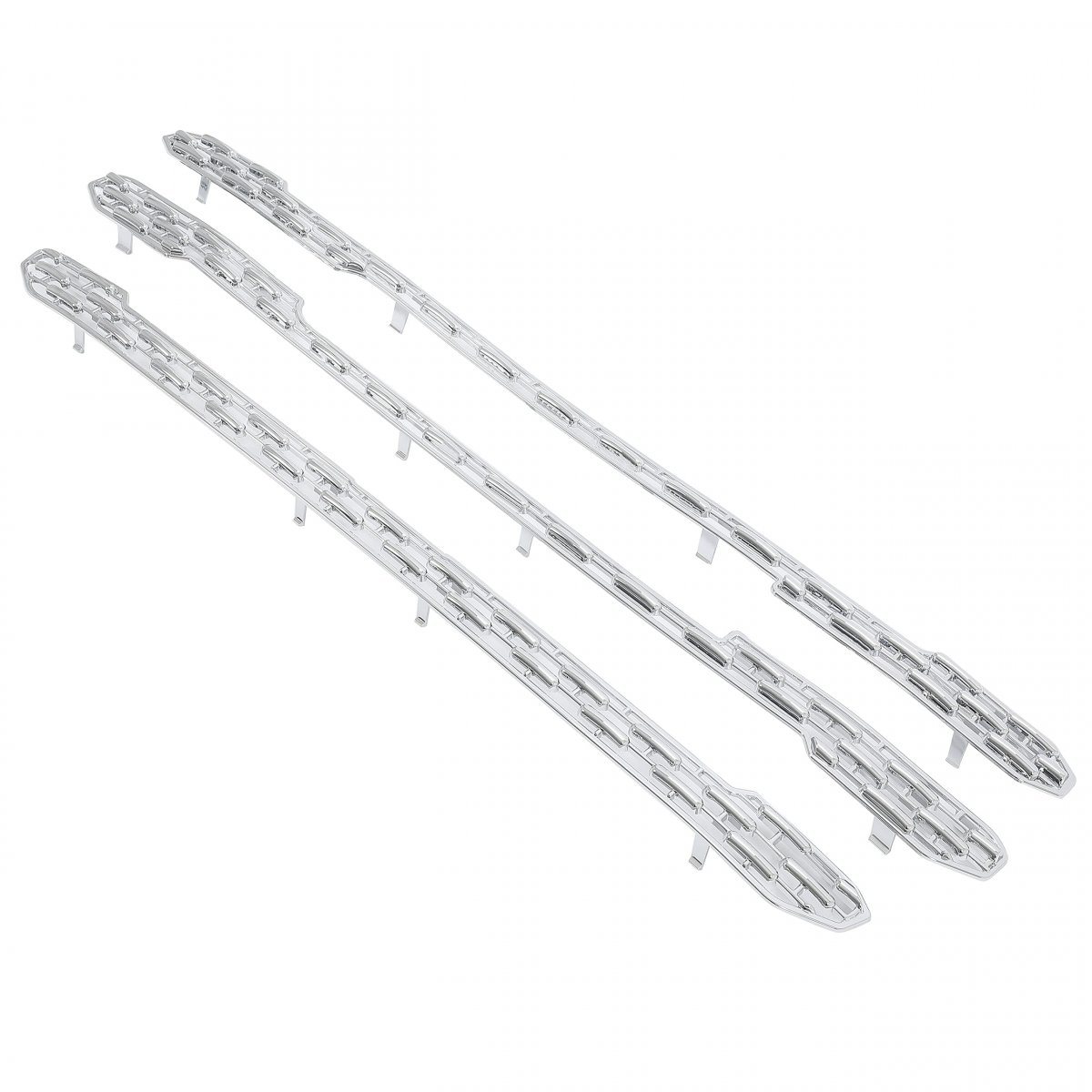 Features: Made of ABS plastic for good performance and durability, light weight, strong structure and long lifespan. Chrome-plated surface treatment can not only enhance the appearance, but also effectively protect the surface.. Function: Designed to replace your old or damaged grille insert. The grille insert is divided into three sections that fit the three horizontal sections of your grille. Elegant design and exquisite workmanship can decorate your car, enhance its charm significantly, highlight your car and add cool and sophisticated style to it.. Package Content: 3PCs Grille Insert. Instructions and installation hardware are not included.. Installation: Easy snap-on installation. Designed as a direct replacement for your previous grille insert, manufactured according to factory specifications to ensure smooth installation. Professional installation is recommended..Other fine products