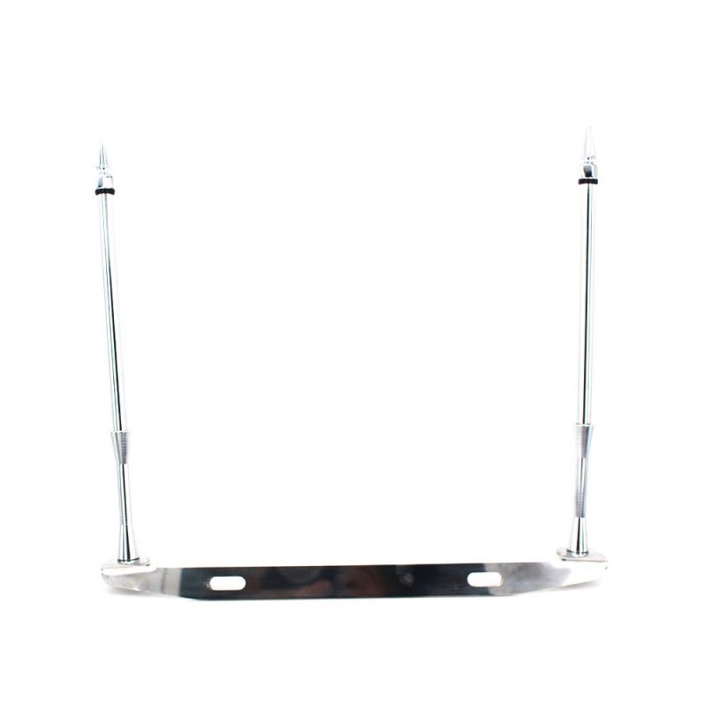 Designed to mount to vertical license plate holders. Rugged design remains sturdy at highway speeds. 10 aluminium flag poles; Lightweight and sturdy. Minimum space between 2 tapping holes: 5" (12.7cm); Maxium space between 2 tapping holes: 6 1/2" (16.5cm). Double 5.5" x 9" flags(Included). We highly recommend to use loctite on the top nut in order to prevent losing it..Other fine products
