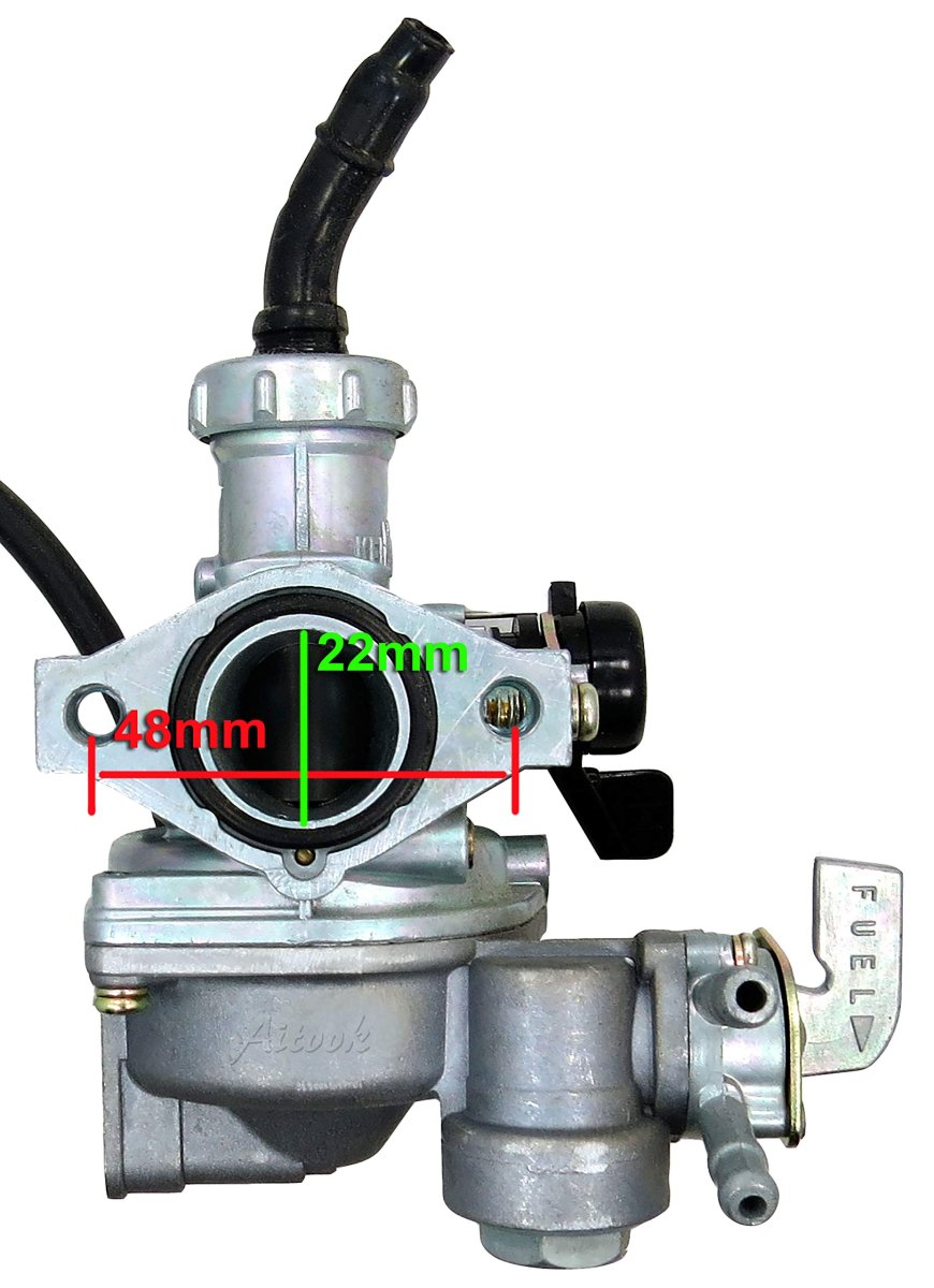 Compatible With Following Honda Models: 1979 ATC110 / 1980 ATC110 / 1981 ATC110 / 1982 ATC110 / 1983 ATC110 / 1984 ATC110 / 1985 ATC110. Mounting Bolt Spacing : 48mm (from center to center). Air Filter Mount Diameter : 40mm. Intake Diameter: 22mm. Order Includes: 1x carburetor assy.Other fine products