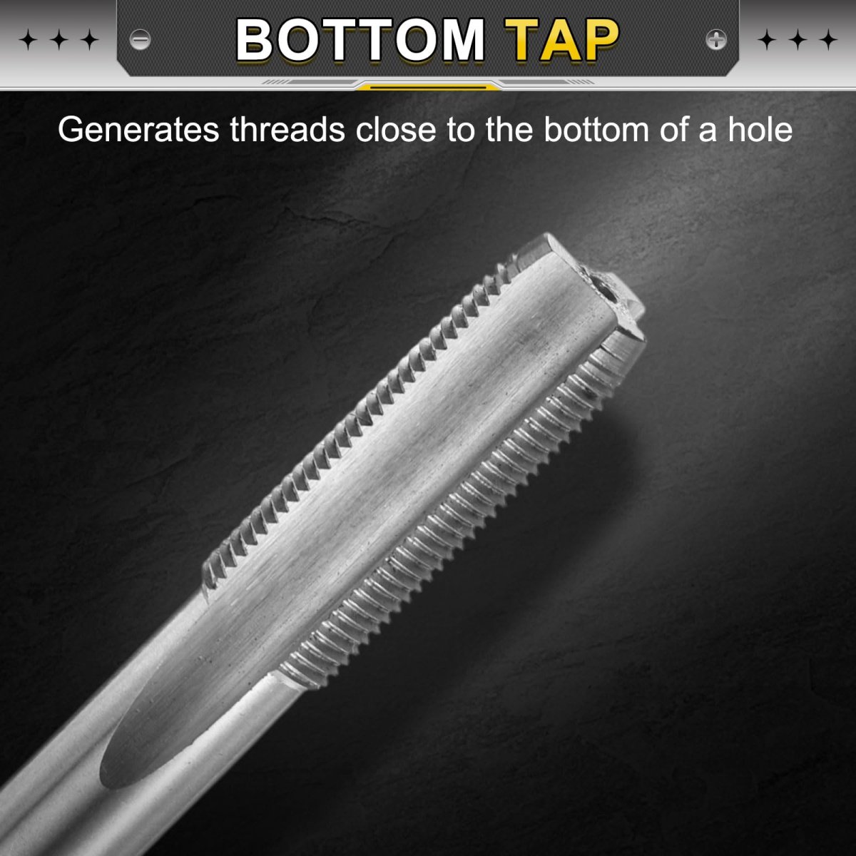 Hand Threading Tap Size: Thread size: 3/8-32 UNEF; total length: 80mm / 3.15"; thread length: 26mm / 1.02"; square end width: 6mm / 0.24"; accuracy class: 2B. Left hand thread cutting, fast tapping with accuracy.. Plug Style Tap: Plug tap produces deeper threads than taper taps and is used after the first tap to further improve thread form and size. The straight groove design of the hand tap can quickly remove chips downward, reduce operating resistance, and achieve efficient processing. The thread is clear and burr-free, which can achieve precise tapping.. Wide Applications: Hand taps are mainly used with tap wrenches and are suitable for re-tapping damaged or stuck threads, or to create new threads. The threading tools are used for tapping through or shallow holes in mild steels, aluminum, iron, copper, hard plastic.. M2 (6542) High Speed Steel: It has high hardness, good wear resistance, is not easy to deform, heat-resistant and has a long service life. It is characterized by only a matrix without any coating, and is suitable for general thread tapping.. Tips: Add appropriate tapping oil for higher quality internal threads and more durable screw taps. Ensure proper alignment, use proper tapping technique, and apply consistent pressure as you turn the tap to achieve clean, precise threads. Periodically reverse while tapping to break up chips and remove debris from the flutes.Other fine products