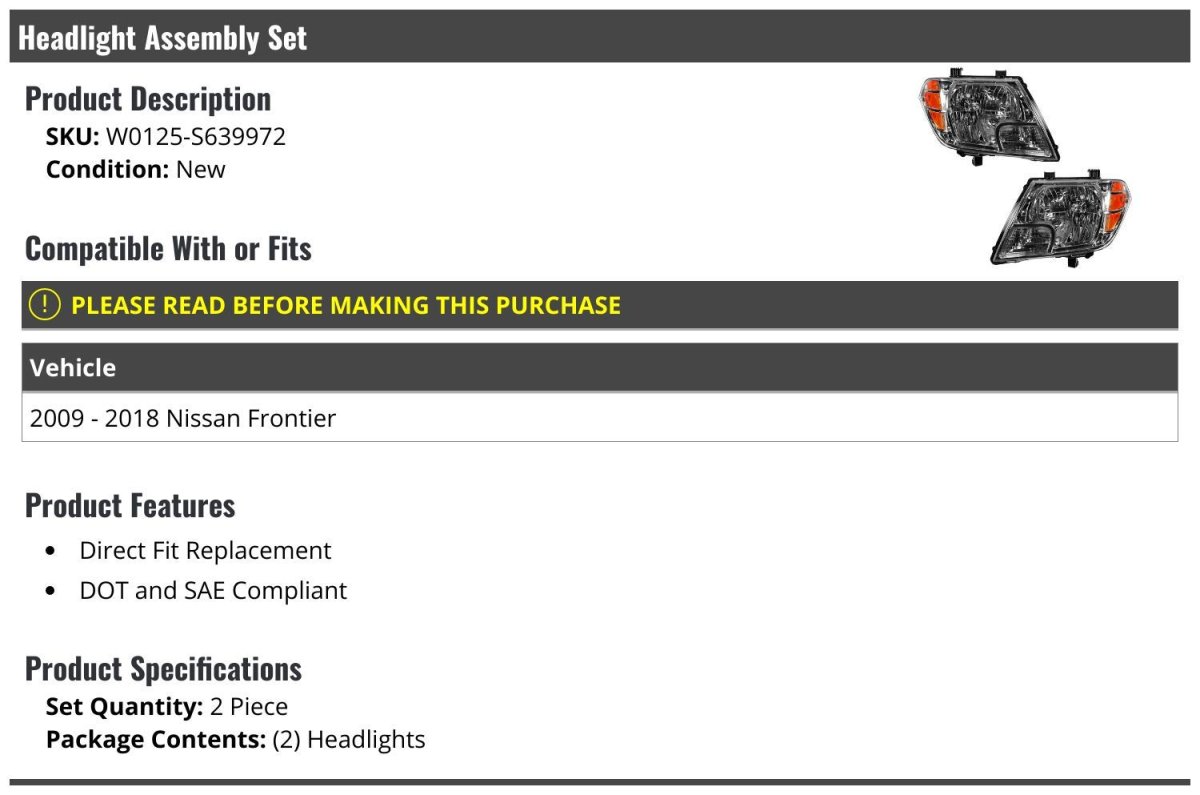 - Headlight Assembly 2 Piece Set For 2009-2018 Nissan Frontier
