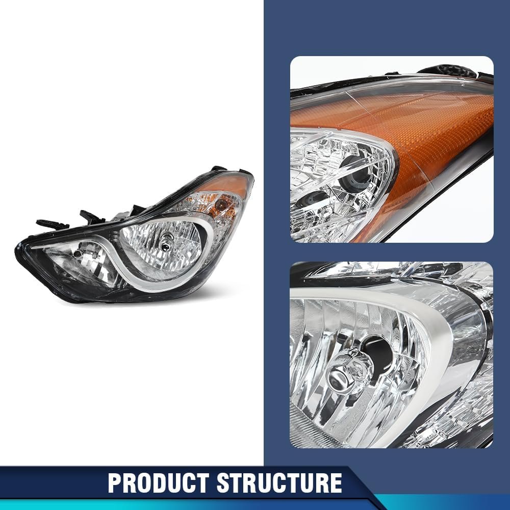 Compatibility: Headlight Compatible with Hyundai Elantra 2011-2013, Fit for w/ Factory Halogen Headlight Model Only. High Beam: Halogen H1/Low Beam:Halogen H7(Bulbs not included). Enhance Visibility: Higher luminous efficiency and lower power consumption can release more luminous flux. It provides better field of view and visibility compared to other headlights, with longer and wider lighting distances.. Excellent Materials: Polycarbonate lens is UV resistant and shockproof to prevent yellowing or cracking. hard housing can better withstand the impact of debris and violent vibration for the headlights.. Advanced Technology: advanced technology and implemented strict quality control measures, ensuring excellent performance and quality.. OE Standard: Meets the Original Equipment (OE) standards, ensuring replacement fit just like the original. Interchange part number:921013Y000, HY2502161..Other fine products