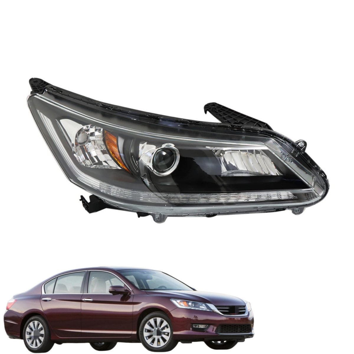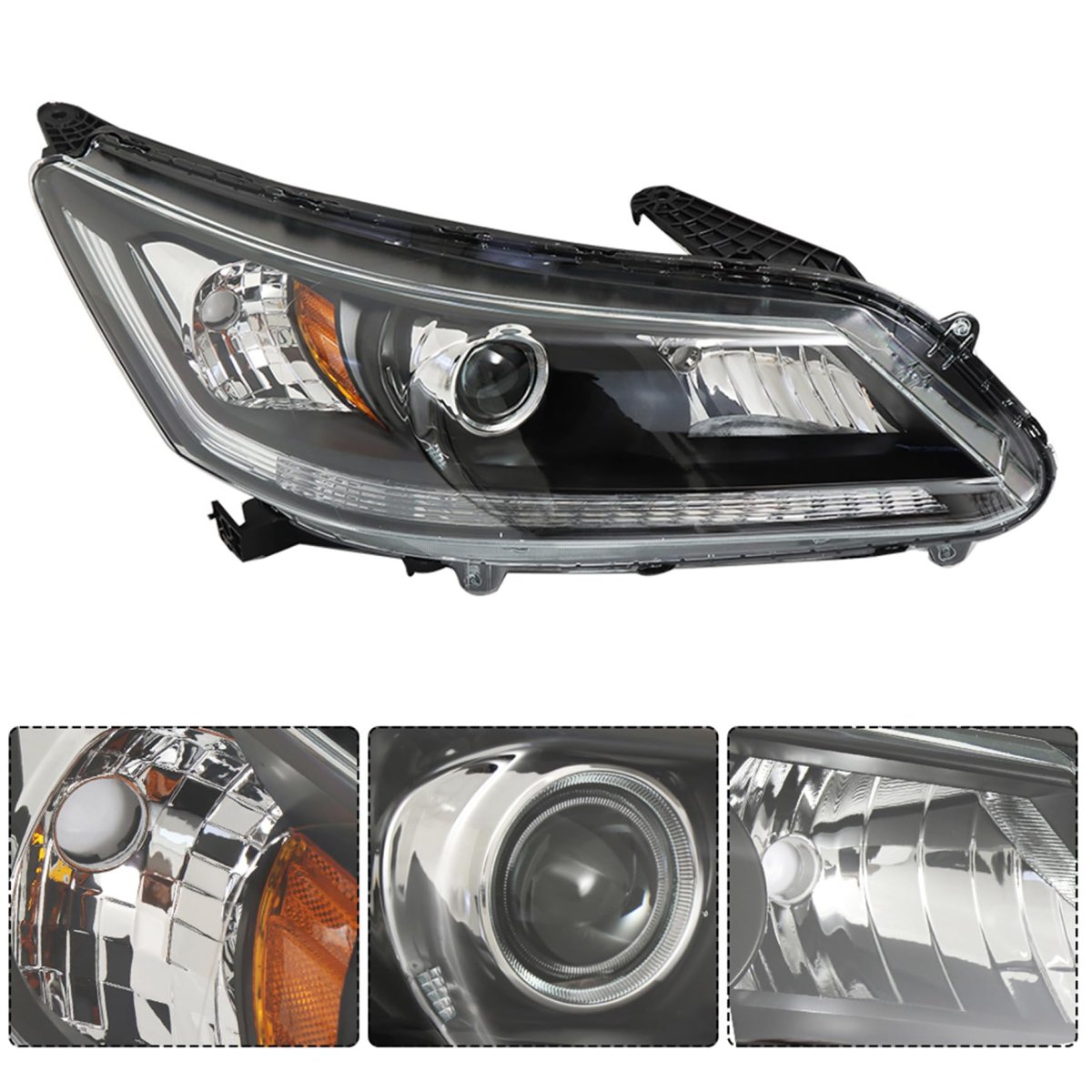 - Headlight Assembly Halogen Without Drl Replacement For Accord 2013-2015 Housing Black Lamp Set Passenger Side Rh 1pc
