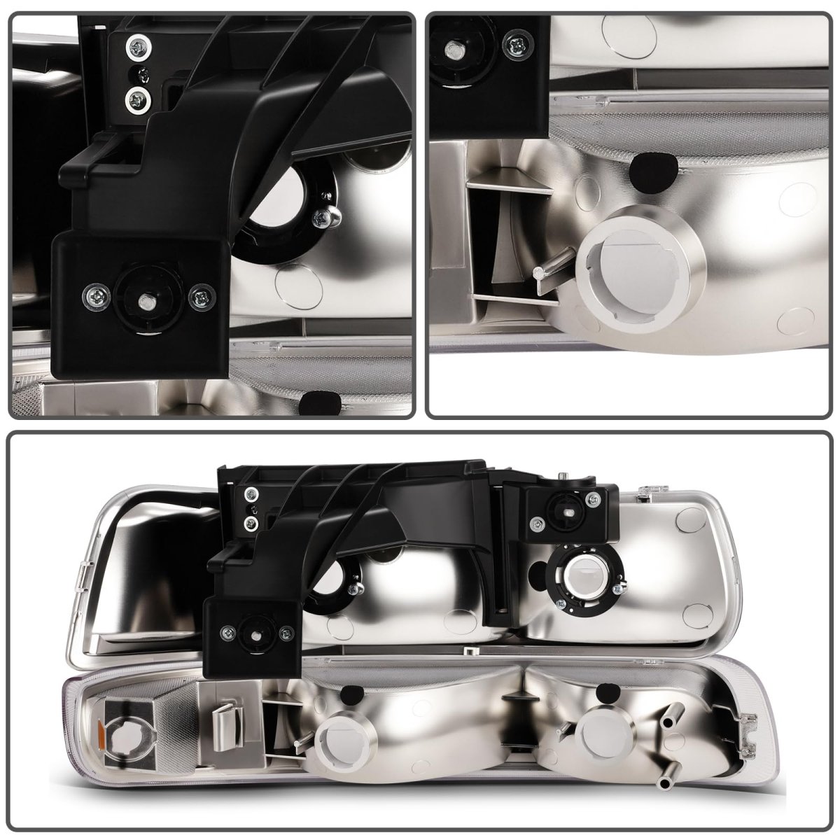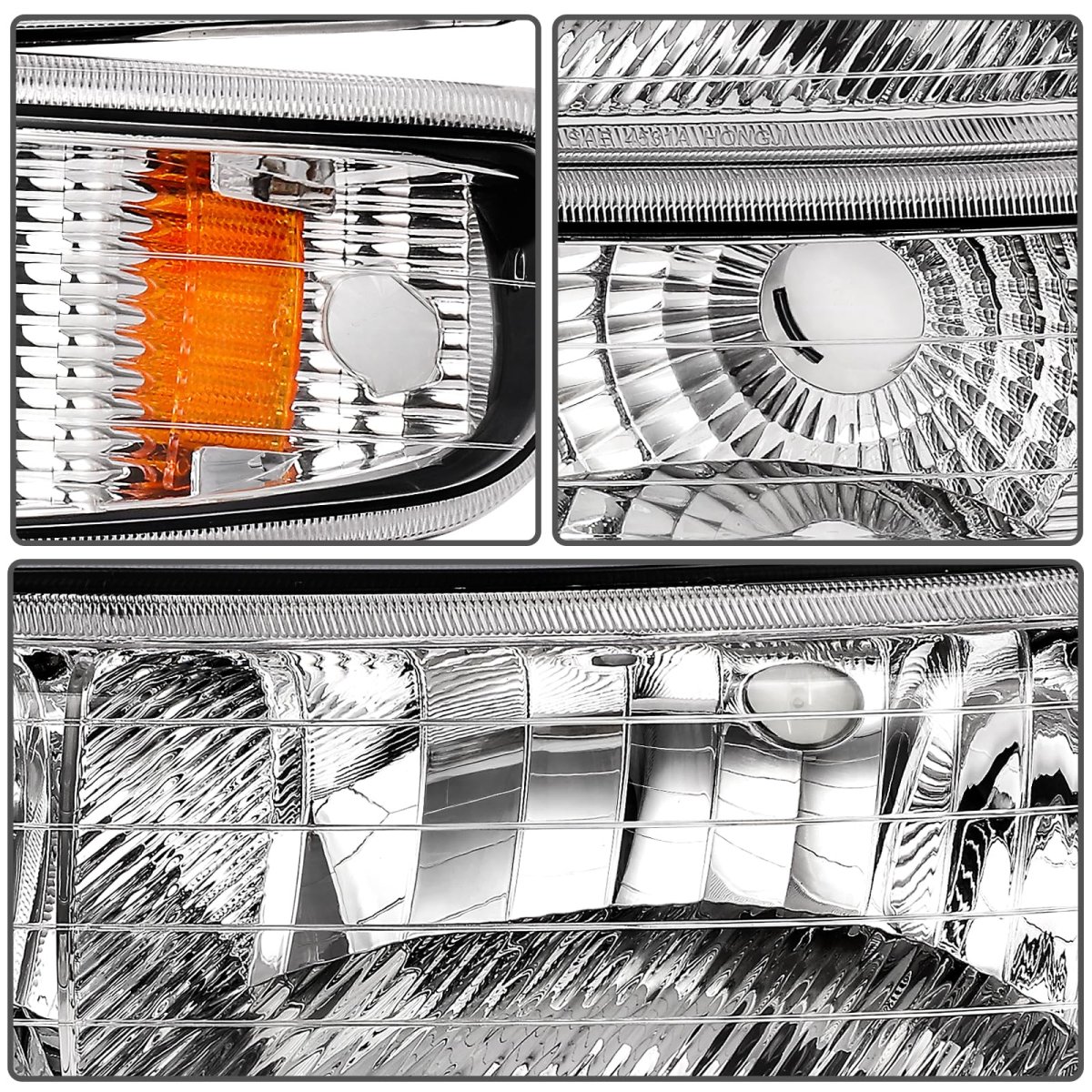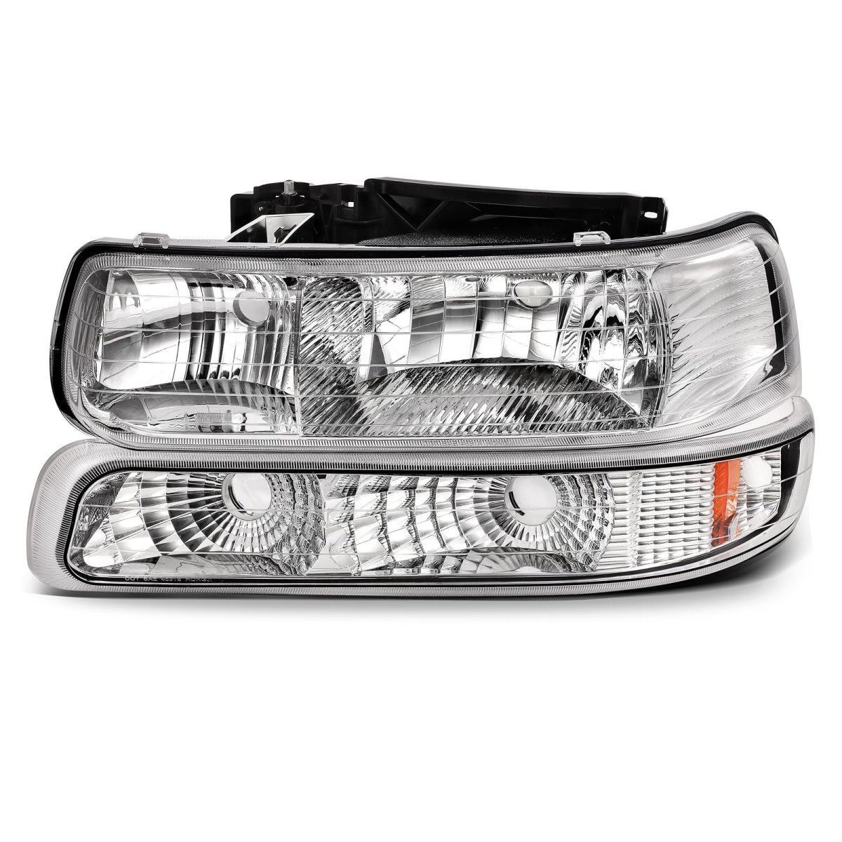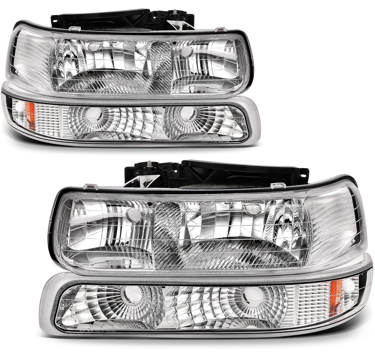 [Wide Fitment]: Fit For Chevrolet Silverado 1500 1999-2002,For Chevrolet Silverado 1500 HD 2001-2002,For Chevrolet Silverado 2500 1999-2002,For Chevrolet Silverado 2500 HD 2001-2002,For Chevrolet Silverado 3500 2001-2002,For Chevrolet Suburban 1500 2000-2006,For Chevrolet Suburban 2500 2000-2006,For Chevrolet Tahoe 2000-2006. OEM: 16526134 16526133. [Easy to install]: Our chrome housing amber reflector clear lens headlight assembly (Bulbs Not Included) Plug-and-Play installation.There's no need for any modifications,direct replacement for factory-installed headlights.. [Outstanding Performance]: lens with good light transmission ensure a superior bright view in day & night.ABS housing with good impact tolerance and heat tolerance. [Multiple Experiment]: Temperature & Humidity Experiment ensure that the unit can withstand a wide range of temperature without reduce light output security. dirt Experiment ensure the unit is properly sealed against harmful road dirt .Fog Experiment ensure that the unit do not cause moisture buildup leading to reduce visibility. [DOT and SAE Compliant]: Meets DOT & SAE Compliance Standards.Comes with Driver and Passenger Side Headlights.Other fine products