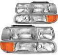 - Headlight Assembly Pair Replacement For 1999-2002 Chevrolet Silverado 1500 2000-2006 Tahoe Chrome Housing Amber Reflector Clear