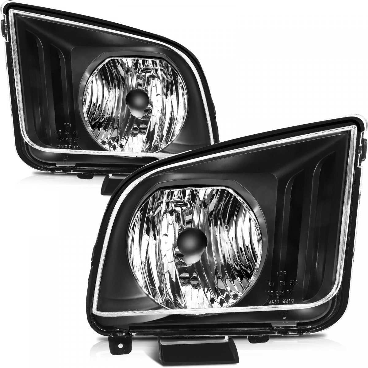 - Headlight Assembly Pair Replacement For 2005-2009d For Mustang Black Housing Clear Lens Bulbs Not Included