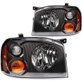Headlight Assembly Driver And Passenger Side Replacement For 2001-2004 Nissan Frontier Xe Black Chrome Housing Clear Lens Amber