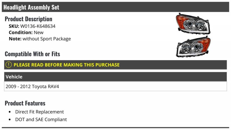 - Headlight Assembly Set For 2009-2012 Toyota Rav4 Without Sport Package