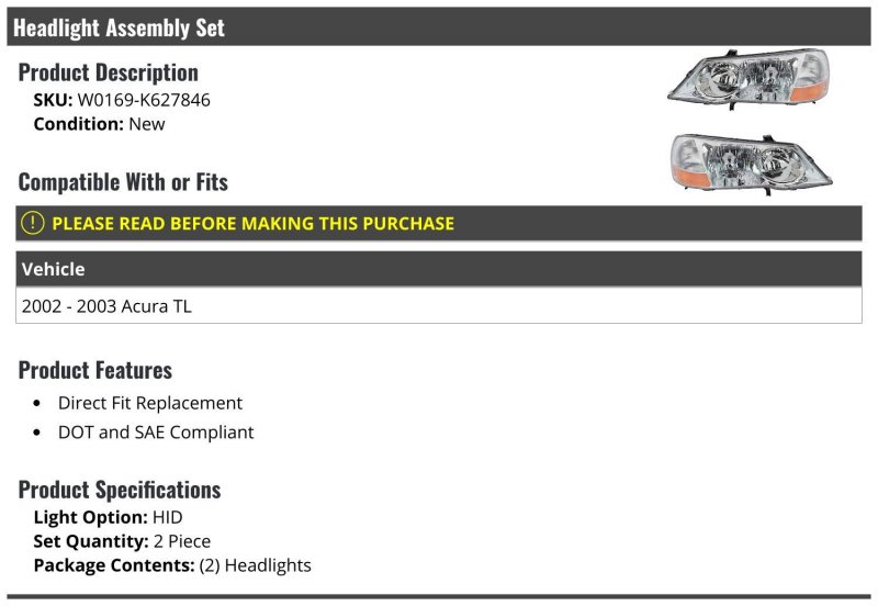 - Headlight Assembly Set Of 2 Compatible With 2002-2003 Acura Tl