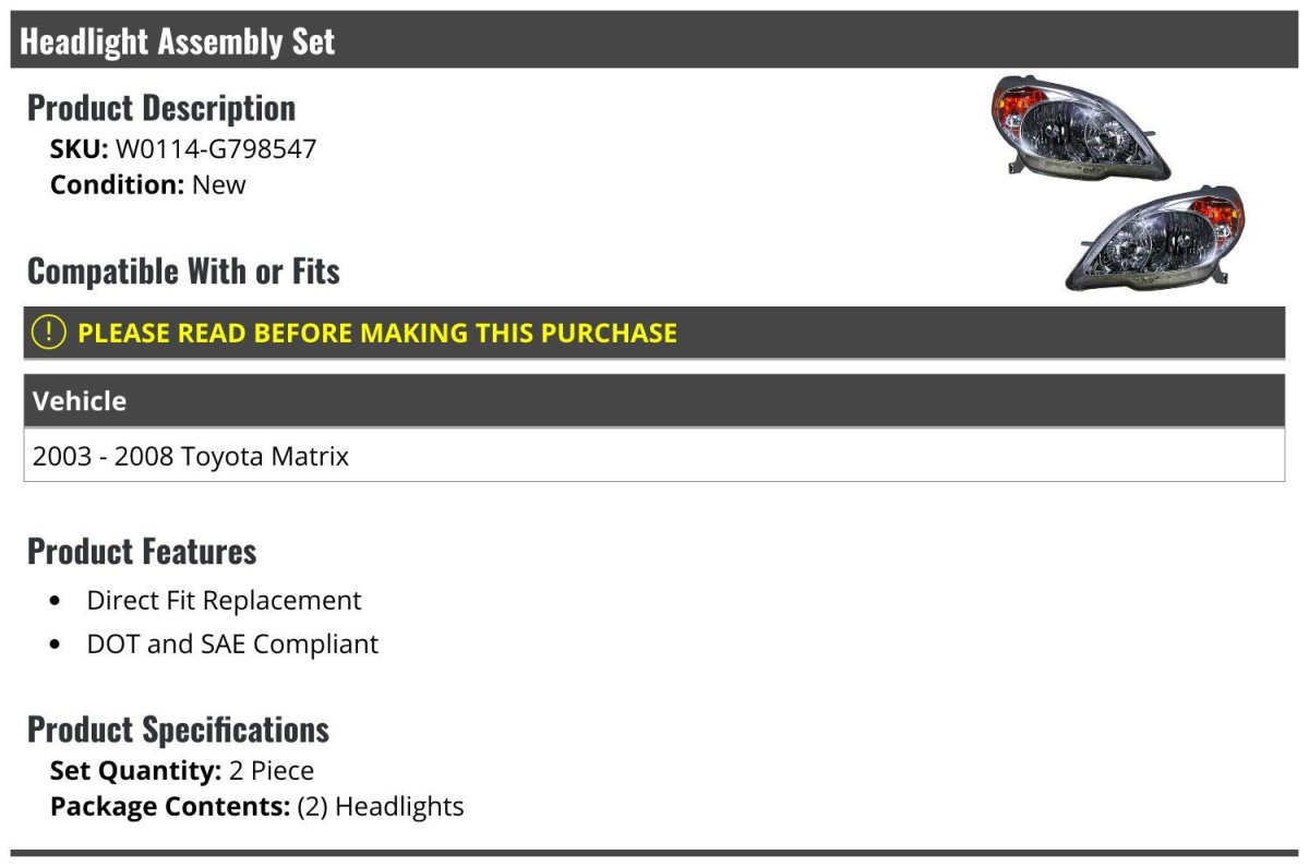 - Headlight Assembly Set Of 2 For 2003-2008 Toyota Matrix
