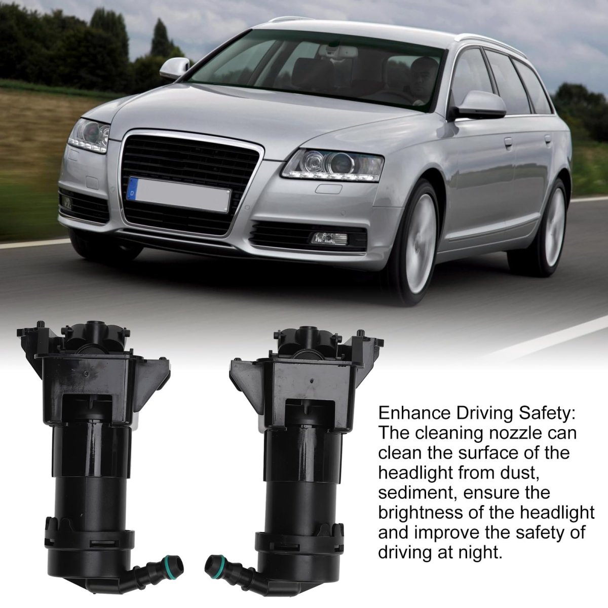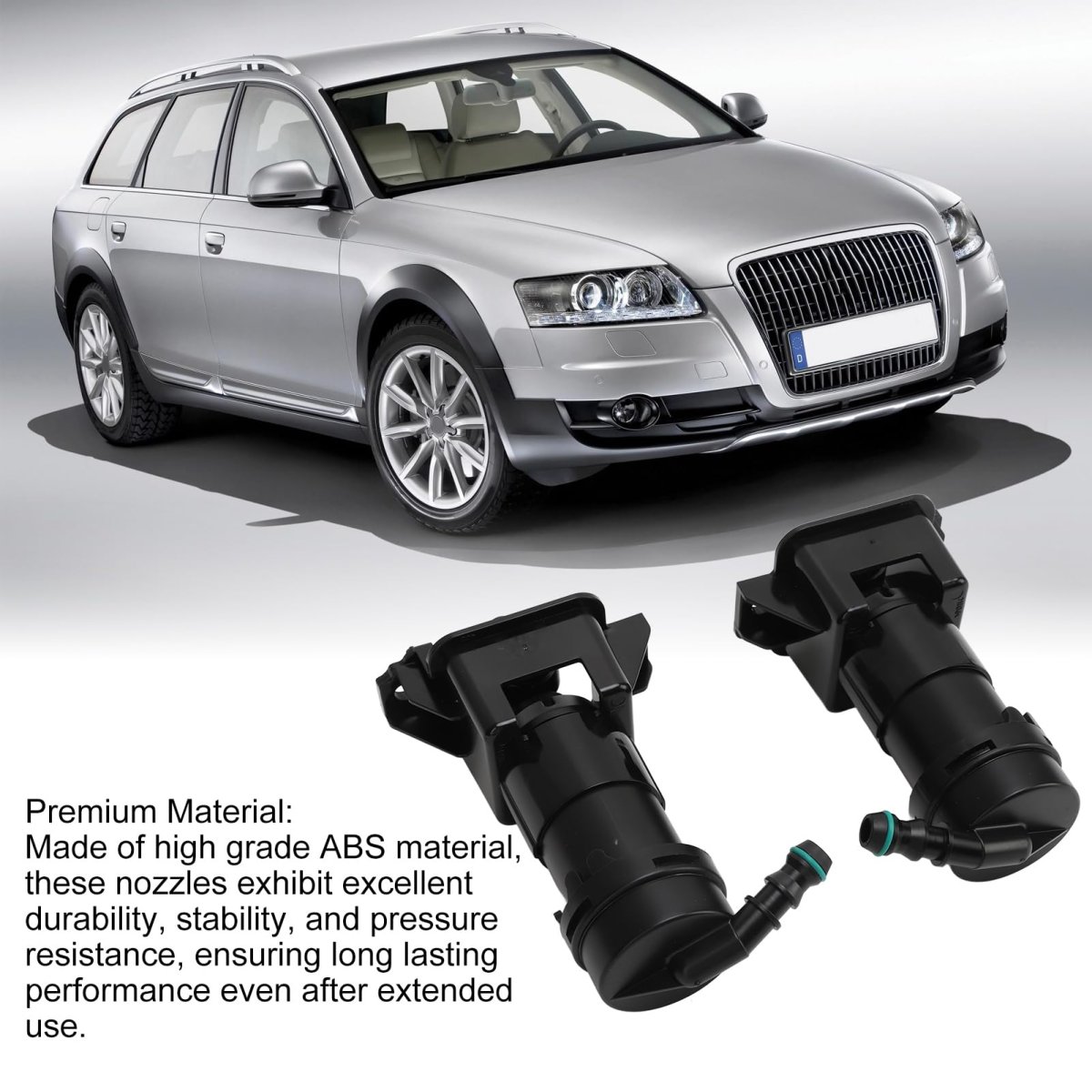 [Easy Replacement] Exact replacement part numbers 4f0955102b (right) and 4f0955101b (left) for hassle- installation.. [Improved Safety] Cleaning nozzle can effectively remove dust and sediment, enhancing headlight brightness for safer night driving.. [Durable Abs Material] Made of high-grade abs material for excellent durability, stability, and pressure resistance.. [Optimal Condition] Effectively replace old or damaged nozzles to keep your car running smoothly and efficiently.. [Professional Matching Service] Headlight washer nozzles designed specifically for your c6 20082011, ensuring optimal performance..Other fine products