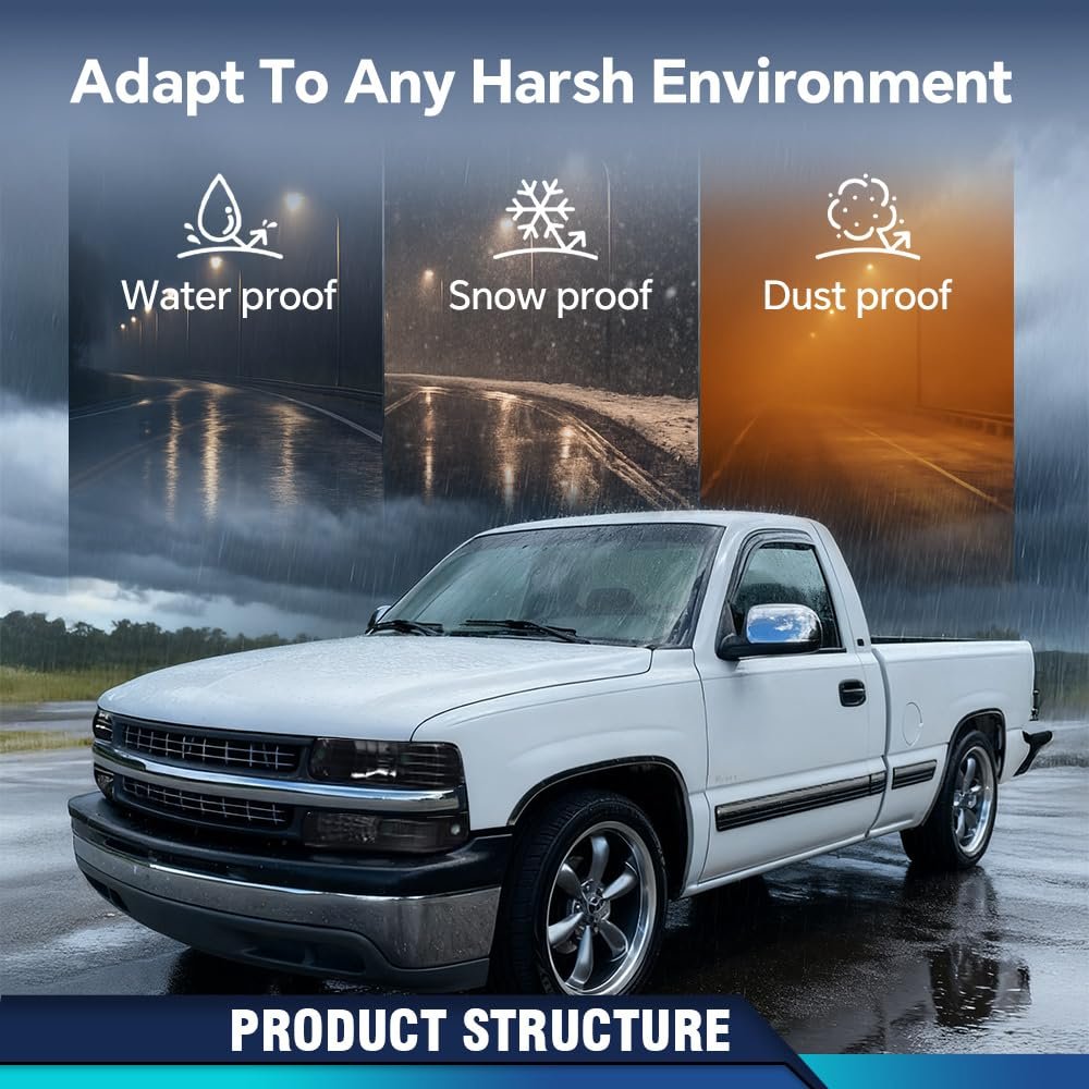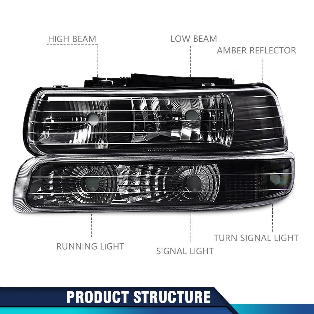 Vehicle Compatibility: Headlights Compatible with Chevy Silverado 1500 2500 1999-2002; Compatible with Chevy Silverado 1500HD 2500HD 3500 2001-2002; Compatible with Suburban 1500 2500 Tahoe 2000-2006; Bulbs are not included. OEM part number/OEM number: GM2521173, GM2520173, GM2503187, GM2502187. Higher Visibility & Lighting: The headlight parabolic reflectors can increase the brightness of light, increase the distance of light and Increase the width of the light. It can improve the visibility of drivers and passengers in dark, storm, rainstorm and other harsh environments. Waterproff: The fully sealed waterproof structure design can make the headlights well prevent external rain and moisture from entering in any bad weather, such as rain, snow, sand, etc. Durable & Impact Resistant: The headlight lens are made of high-quality polycarbonate. Lens and hard shells can better withstand the impact of debris and violent vibration for the headlights. It allows drivers to drive more safely and enjoy driving more. Professionalism & Rich Product Lines: We have professional design teams and factory. We have a wide range of headlight products, we can meet the compatible needs of different vehicle models.Other fine products