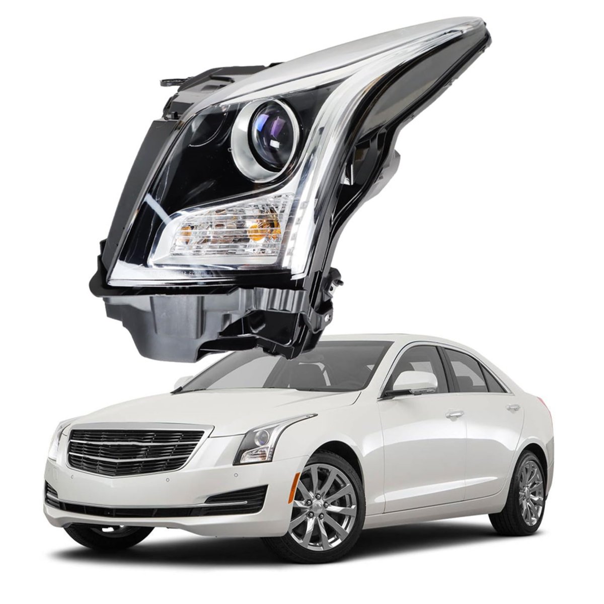 - Headlights Assembly Replacement For Ats 2013-2018 Halogen Projector Headlight Headlamp Lh Left Driver Side