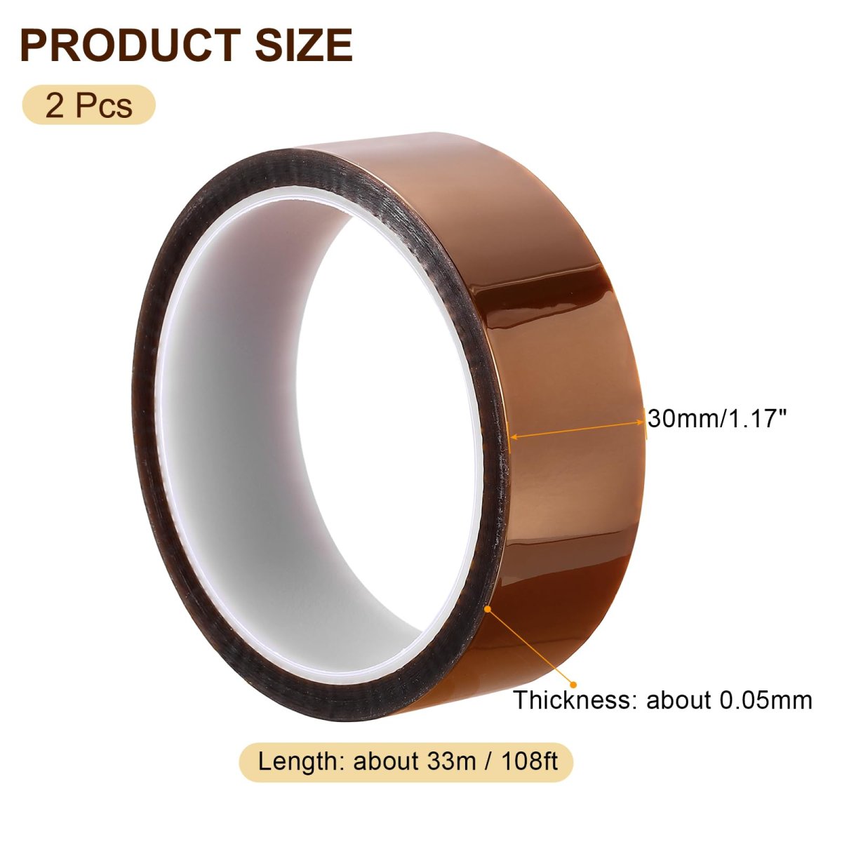 - Heat Resistant Tape 2 Pcs High Temperature Transfer Polyimide Film Adhesive 30mm X 33m 108ft