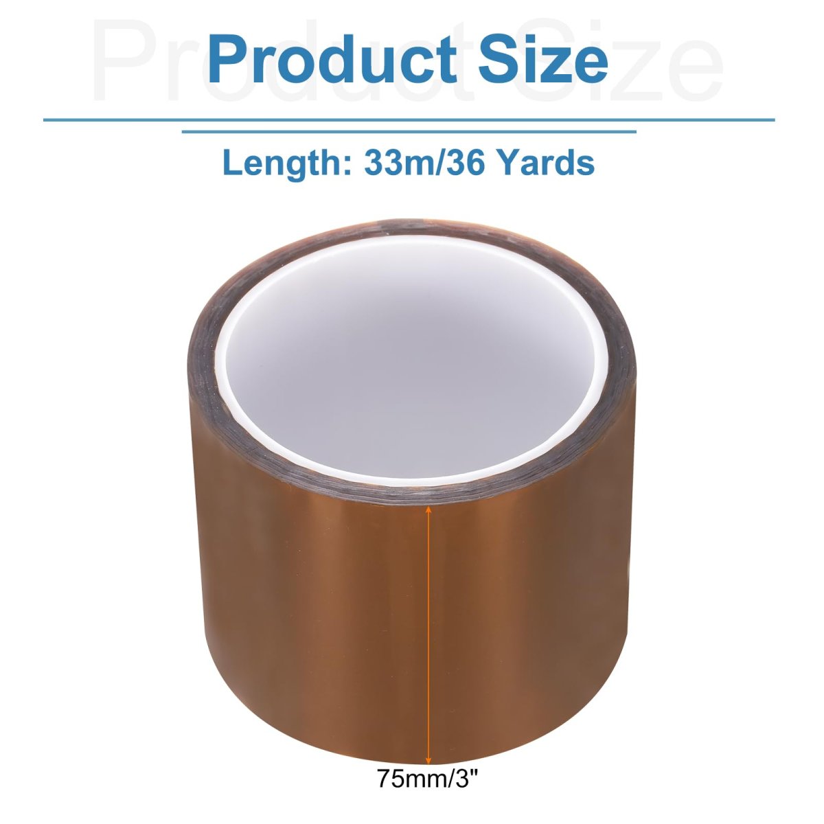 Heat-resistant tape polyester film tape. Adhesive made of acrylic acid, high viscosity, waterproof, not easy to corrode and age, single-sided self-adhesive design, no residue, easy to use, with excellent electrical insulation performance and high temperature resistance.. Color:Brown;Width: 75mm/3 Inch;Length: 33m/36 Yards;Thickness: about 0.06mm/0.002inch;Long-term temperature resistance: about 180C / 356F;Short-term temperature resistance:about 230C / 446F;Type: One-side self-adhesive design;Material: PET;Package Content:1 Rolls x PET Tape;. high temperature tape is very suitable for protecting electronic products and can be used for sensitive printed circuit board (PCB) components such as circuit board repair, welding, 3D printing, etc. Widely used as high temperature tape for transformers, motors, coils, capacitors and variable frequency power supplies in the electronics industry.. The surface of the tape is wear-resistant and pull-resistant, not easy to break and deform, and it is not easy to leave residual glue after tearing; therefore, it is also suitable for marking and positioning on workbenches, desktops, and floors.. Colored pet tape 5S desktop identification positioning tape is also suitable for ground area division, drawing board table application, park venue use, manual production use, shelf classification use, wall graphic DIY.Other fine products