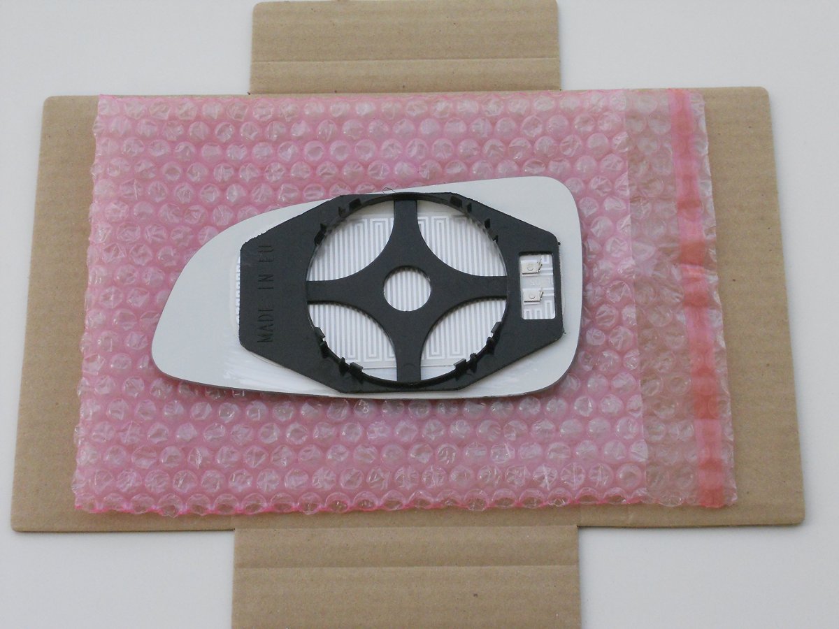 Heated Mirror With Backing Plate - Clips on the motor Mount - Check picture that shows back of the glass and comare to yours. Diagonal Measure (Longest): 7 1/2 inch = 19.1 cm. Longest diagonal dimension provided is the longest size of the glass in any direction, normally longest top to opposite bottom corners measurement.. Check clips position and connector type in picture. Easily clips on motor, no glue needed. Complete with heat grid and not a stick on glass. Aluminum back coated real mirror glass for automotive application. This feature is in contest with glasses with chrome paint spray film on top that look like mirror but top chrome spray fades or scratches over short time..Other fine products