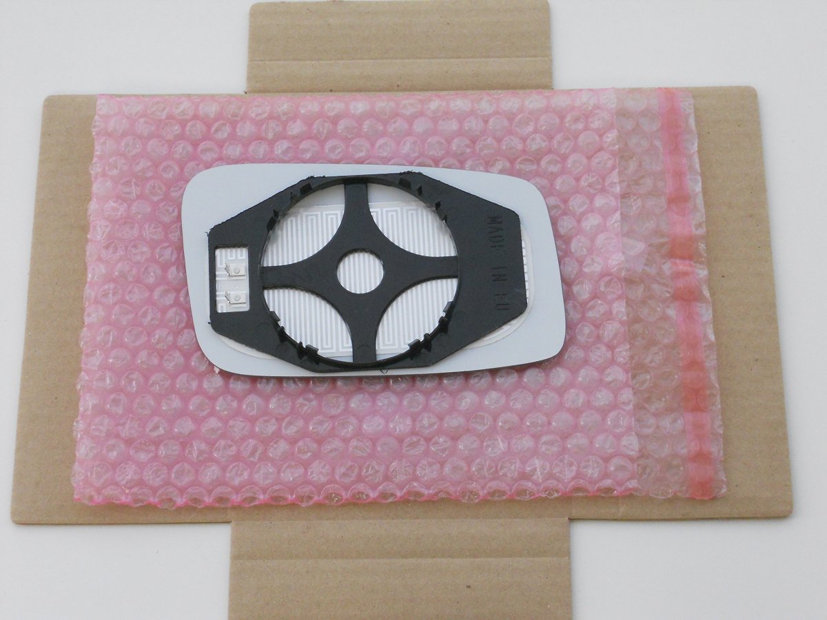 Heated Mirror With Backing Plate - Clips on the motor Mount - Check picture that shows back of the glass and comare to yours. Diagonal Measure (Longest): 7 1/8 inch = 18.1 cm. Longest diagonal dimension provided is the longest size of the glass in any direction, normally longest top to opposite bottom corners measurement.. Check clips position and connector type in picture. Easily clips on motor, no glue needed. Complete with heat grid and not a stick on glass. Aluminum back coated real mirror glass for automotive application..Other fine products