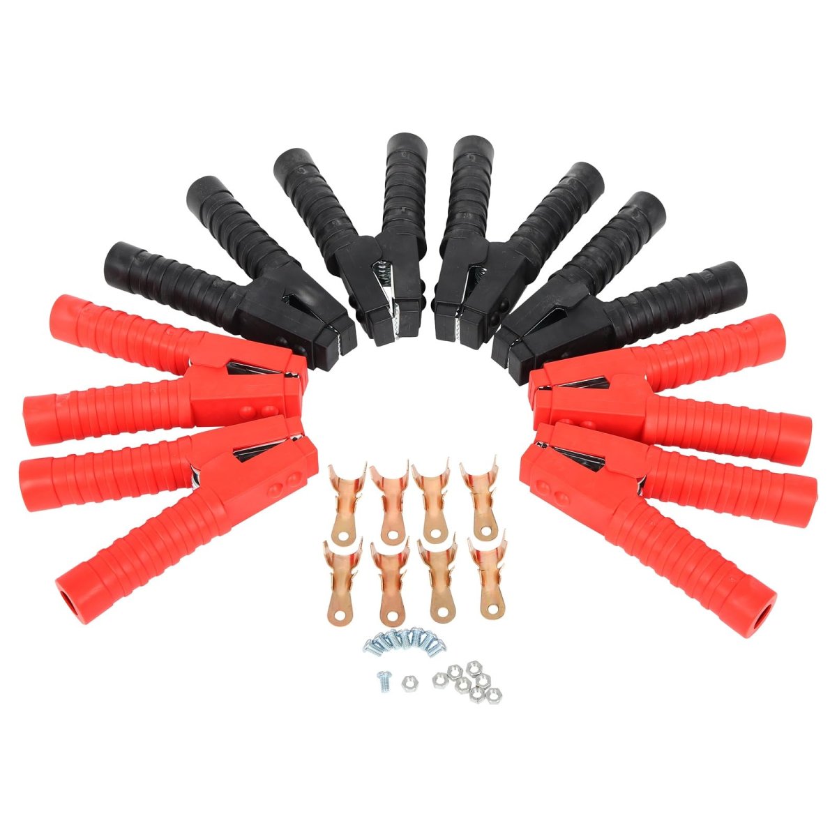 Convenience - 155*110MM length makes it easy to reach from one car battery to another. Copper clad aluminum cables remains flexible even at -40C.. Powerful Function - The heavy duty Jumper Cable Clamps can support instant electricity and easily help awaking break-down vans, trucks, SUV, cars etc.. Feature - Heavy duty, tangle-free cables ensure quick and efficient connections. PVC insulation with resistance to heat, oil and acid.. Good Quality - Sturdy construction made of good-quality material ensures a long service life with extended reliability.. Advantage - Cable with strong jaw teeth and springs for excellent grip force. The jaws are strong and make connection easy with better conductivity and tension..Other fine products