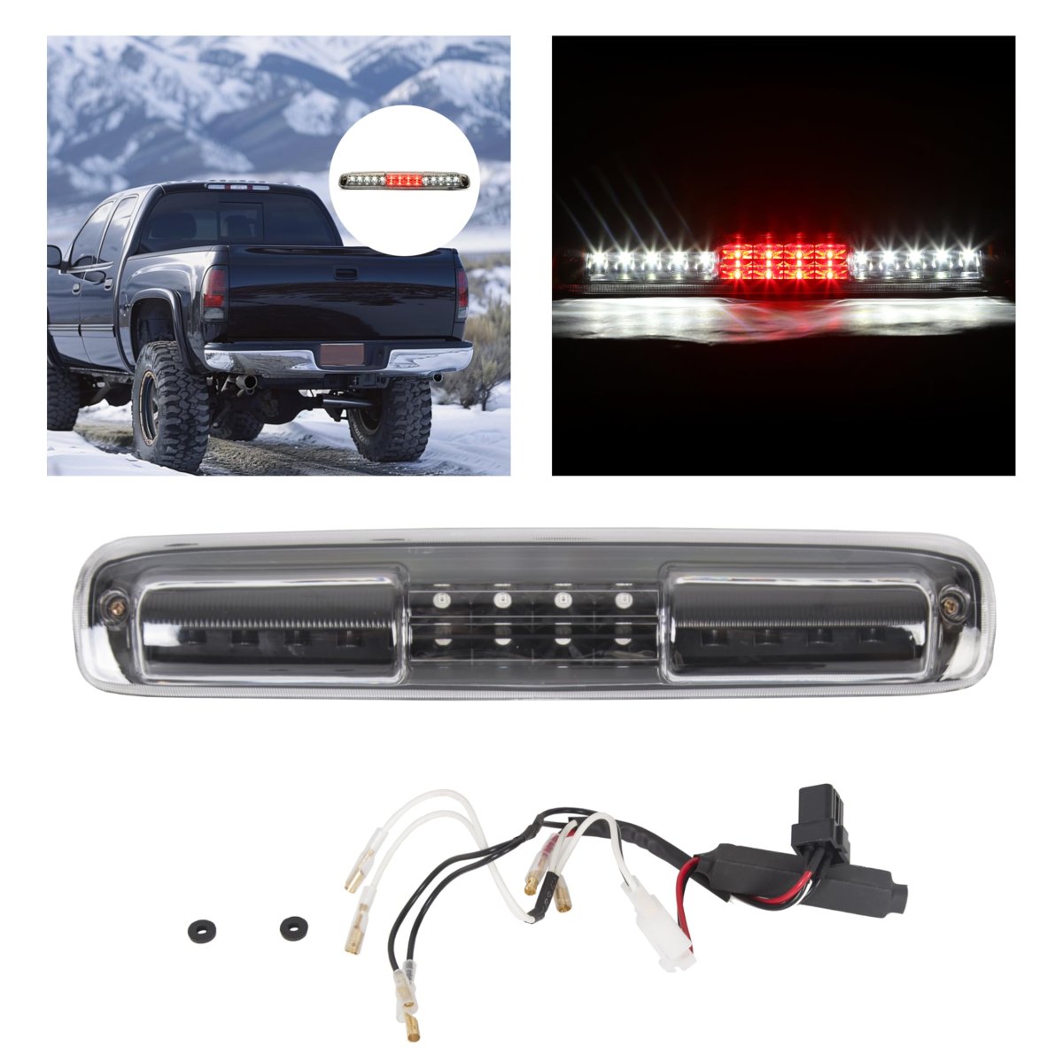 FIT 1 - Compatible with 1999-2006 Chevy Silverado 1500 2500 3500; 2001-2006 Chevy Silverado 1500 2500 3500 HD; 2007 Chevy Silverado 1500 2500 3500 Classic; 2007 Chevy Silverado 1500 2500 HD Classic. Replacement for 5978318 1652520.. FIT 2 - Compatible with 1999-2006 GMC Sierra 1500 2500 3500; 2001-2006 GMC Sierra 1500 2500 3500 HD; 2007 GMC Sierra 1500 2500 3500 Classic; 2007 GMC Sierra 1500 2500 HD Classic.. SAFETY - The third brake light increases the number of other drivers who can see you braking. Mounted high to be easily seen, especially when driving in inclement weather or at night.. MATERIALS - This LED third brake light features a durable polycarbonate lens and freeform reflector. With high performance and long life, it can provide drivers with a safe driving experience for a long time. Provide drivers with a stable driving experience in rain, snow and other weather.. INSTALLATION & PACKAGE- We highly recommend using a manual screwdriver for installation. Electronic tools can easily be over-tightened and cause the housing to crack. Package includes one third brake light..